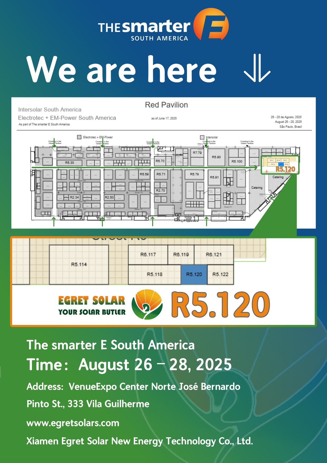 كلاعب رئيسي في قطاع الطاقة الجديد ،Xiamen Egret Solar New Energy Technology Co. ، Ltd.ستعرض منتجاتها الأساسية والحلول التقنية في معرض Swarter E South America 2025 في البرازيل من 26 إلى 28 أغسطس 2025 ، لمناقشة تطوير وتعاون سوق الطاقة الجديد في أمريكا الجنوبية مع شركاء الصناعة العالميين.